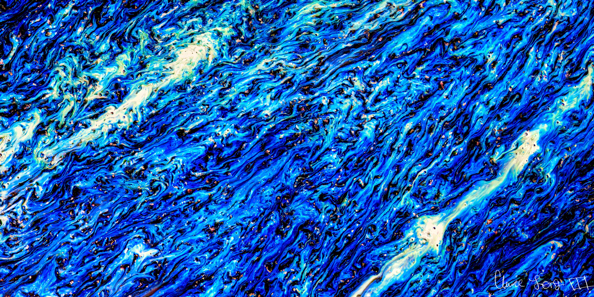 The dark blue hues in Reprieve represent the countless souls who chose the ocean's depths over bondage, embodying historical remembrance and symbolic liberation. The swirling patterns of white and pale blue suggest turbulent, crashing waves, representing nature’s overwhelming force and a metaphorical embrace of those who defied their captors. These oceanic abstractions, captured in high-magnification detail, elevate the piece beyond pure aesthetics into a visually symbolic act of remembrance and resilience.
